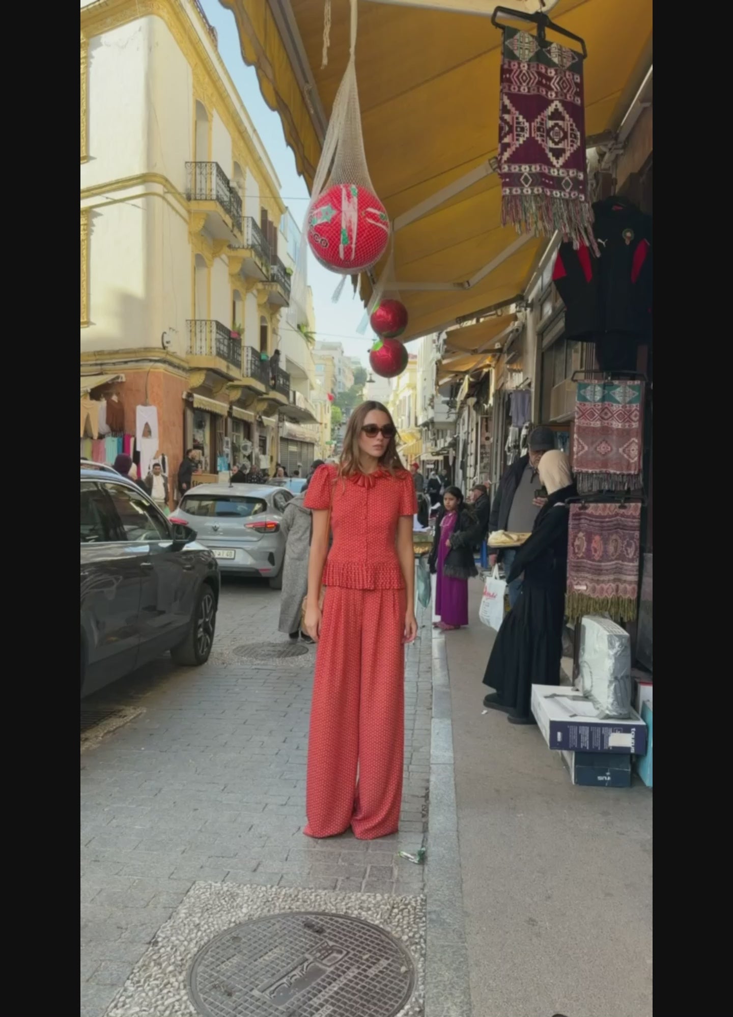 Wide-leg trousers with a relaxed silhouette, featuring a waistband and pleats that enhance their elegant drape. Made from a fluid polka-dot fabric with a central zip fastening, they have back flaps that create the illusion of pockets. Perfect for pairing with the Odetta top.