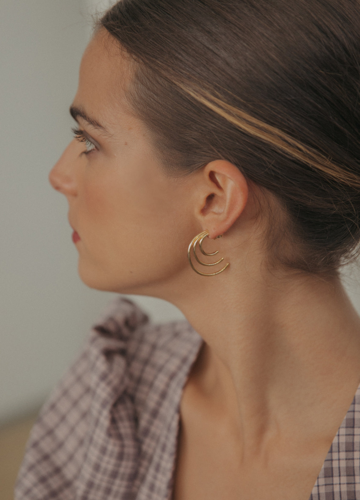They are open triple hoop earrings in different sizes. Made of 1 micron gold-plated brass with butterfly closure.