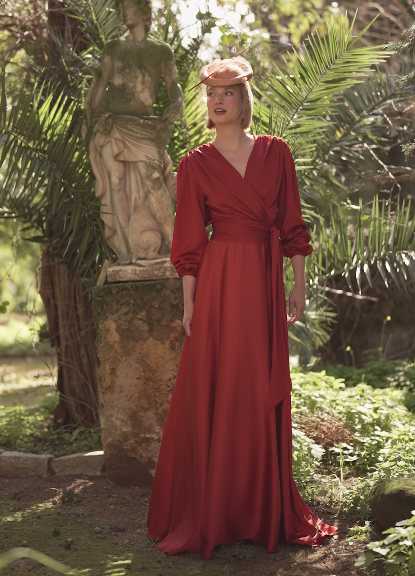 Jupe longue en tissu fluide au fini légèrement satiné. Ajustée à la taille par une large ceinture et évasée avec un demi-jupe. Entièrement doublée pour un confort optimal. À porter avec la chemise Carolyn.