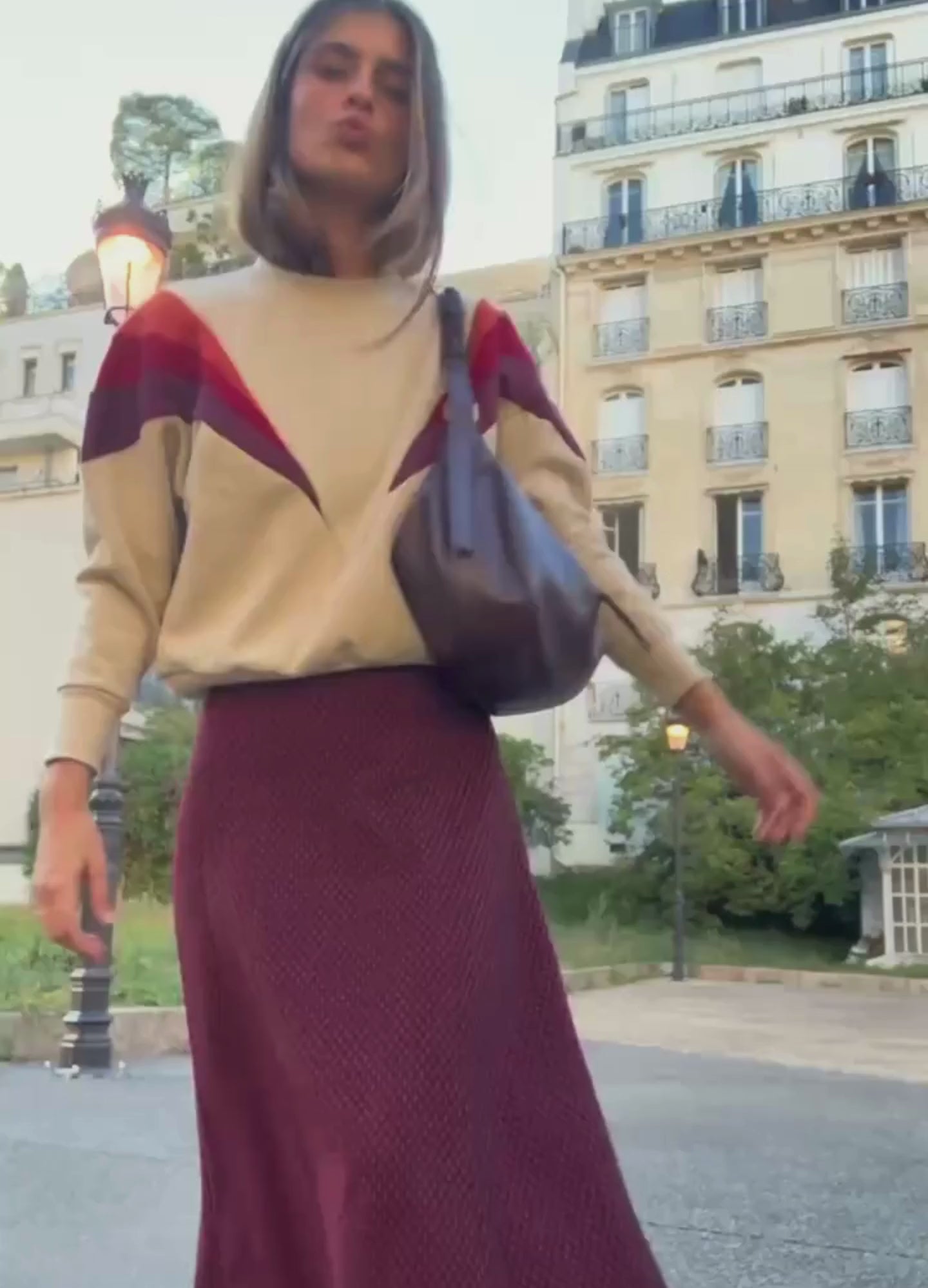 Sudadera de corte geométrico en tejido de punto. Presenta cuello a la caja, hombros con tres cortes en colores diferentes y mangas largas abullonadas con puños elásticos. El bajo también termina en punto elástico. Logo bordado en la espalda. Diseño exclusivo de Cherubina.